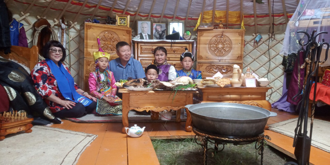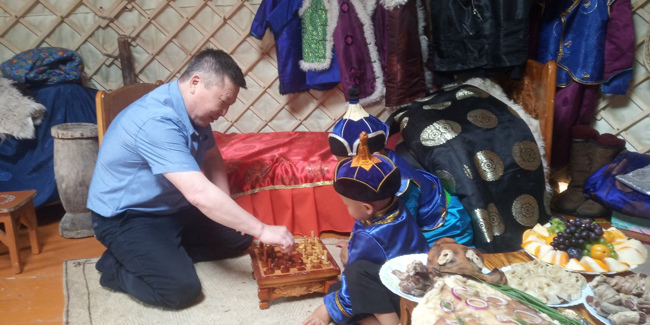 Одна из самых красочных юрт нынешнего Наадыма – юрта Чаа-Хольского кожууна. Их хозяева – участники губернаторского проекта «Кыштаг для молодой семьи». Гостеприимная юрта многодетной семьи распахнута для всех гостей Наадыма. Вот и главный врач Республиканского наркологического диспансера Ирина Опанасовна Бадыргы, а также народный врач Республики Тыва, кандидат медицинских наук, врач-хирург Вячеслав Товарищтаевич Ховалыг не преминули посетить хлебосольную юрту. Почаевничали, сыграли в шахматы, пожелали удачи и успехов молодым животноводам в их нелегком труде. (из стр. Мерии города Кызыл)