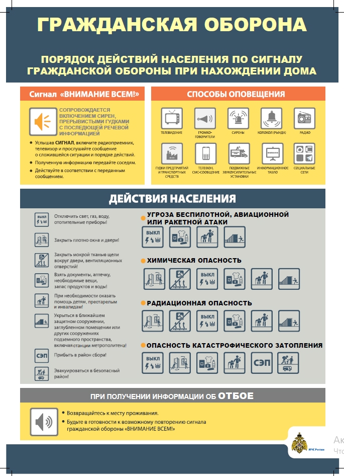 «Внимание всем!» – это предупредительный сигнал. Он подается с целью привлечения внимания населения и последующего сообщения об аварии, катастрофе, стихийном бедствии.